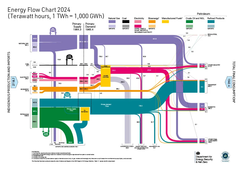 [Please Note Regarding Energy Flow Chart: data from 2023 - 2024 will be available after 31st July 2025 - Department of Energy and Net Zero.] We are unsure as to why the Dept Energy & Net Zero should take 8 months to gather this data - so here is the USA version - which is very simialar in structure {Click HERE to see USA Chart - in a not so attactive format}